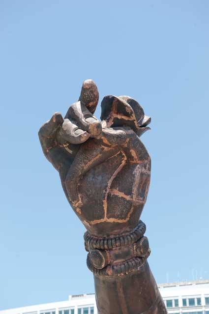 Later. It rained most of yesterday afternoon and there was no chance for a walk, but I was, for whatever reason, dead tired anyway and attempted one or two naps. The sun came out late this morning and so I hopped a bus, had a cup of coffee and a piece of chocolate out on the patio in front of Peet's, taking a picture of the Kangaroo-Monkey Paw out of habit; ambled over to the City Center to again sit at a table and take a photograph of a couple sitting at the base of the fountain - no, I don't know what they were up to either, but there are two people under that blanket - and then ambled, and I do mean “ambled” toward home. Taking my time. Shooting one or two pictures before stopping at a familiar stop and waiting on transportation. Tired, but less tired than I was yesterday afternoon. Different day, same plot.