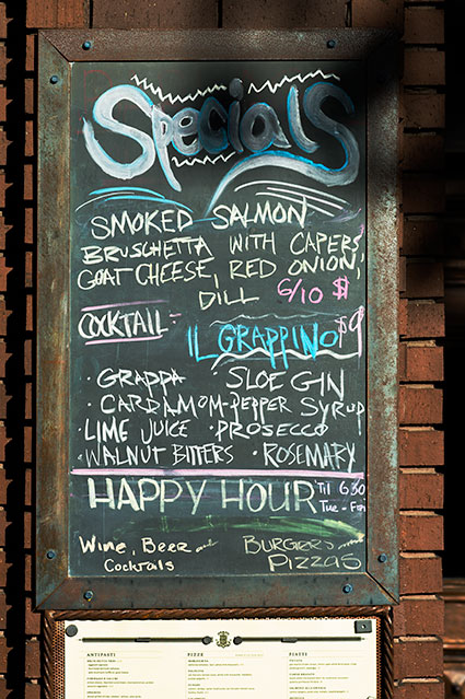 Thursday. Lights out again well before ten, awakening for about twenty minutes at four, awakening for good at close to seven. So a long enough night's rest, some thought to driving, but finding a way to leave the car keys on the dresser top and walking to breakfast (as well I should). A photo when passing Grand Fare Market, if only because the lighting was right, some out of focus photographs of the pandorea flowers on the way back. What's with the crappy pandorea photographs? My fault. We'll buckle down tomorrow. He said.